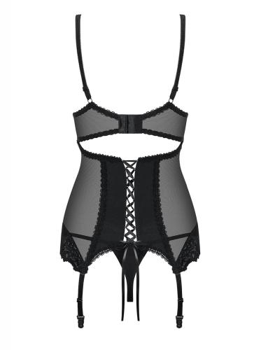 Überrasche deinen Partner mit diesem 2-teiligen Strumpfband-Set mit wunderschönen Spitzendetails. Dieses Set enthält ein Strumpfband-Korsett und einen passenden Tanga. Der geformte BH hat für einen guten Halt Bügel und die Träger sind verstellbar. Das Set enthüllt deinen Hintern komplett und das Korsett hat für einen aufregenden Look eine Schnürung an der Rückseite. Ergänze dein Outfit mit einem Paar passender Strapsstrümpfe.