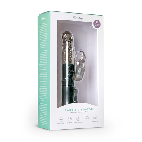 Schwarzer Rabbit Vibrator von EasyToys, der Sie intensiv verwöhnen wird. 12 Vibrationsgeschwindigkeiten kitzeln Ihre Klitoris, während die sich drehenden Perlen am Hals Sie herrlich stimulieren werden. Wählen Sie eine der 3 Drehstufen, die sowohl nach links als auch nach rechts drehen. Auch Ihr G-Punkt wird nicht vergessen! Mit diesem Vibrator wissen Sie bestimmt, dass Sie einen himmlischen Höhepunkt erreichen werden. Außerdem ist der Vibrator wasserdicht, sodass Sie ihn auch unter die Dusche oder in die Badewanne mitnehmen können. Bestellen Sie die Batterien mit und der Genuss kann sofort beginnen!