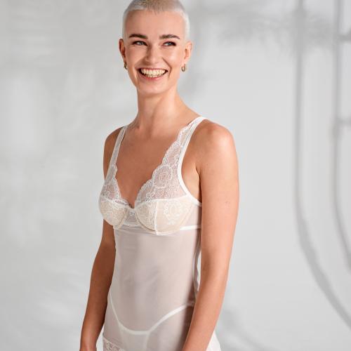 Nachthemd mit Spitzenverzierungen, Bügel-BH und verstellbaren Trägern. Inklusive passendem Tanga.