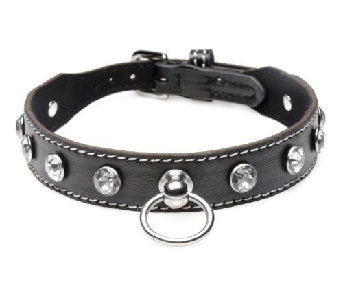 Gib mit diesem schwarzen Halsband von Strict deinem perversen Look einen glitzernden Kick. Die rot schimmernden Strasssteine sorgen für einen atemberaubenden Look. Dank des großen Rings kannst du ihn mit verschiedenen Accessoires und Fesselseilen kombinieren. Das Halsband besteht aus veganem PU-Leder und ist leicht zu reinigen. Mit einem weichen Tuch und milder Seife oder Spielzeugreiniger reinigen.