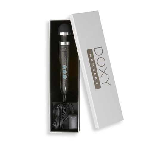 Das Doxy Nummer 3 – Disco Black ist unsere neues Wand Massagegerät. Der Körper ist aus eine gegossene Aluminium-/ Titanlegierung und die Spitze ist aus medizinischem Silikon geformt. Der Länge der Nummer 3 ist 28 cm mit einem Durchmesser von 4,5 cm an der größten Stelle. Das Netzkabel ist ca. 3 Meter lang. Die ansteigende Impulsfunktion wird durch Einschalten des Geräts aktiviert, indem Sie den Netzschalter 3 Sekunden lang gedrückt halten, bevor Sie ihn wieder loslassen.