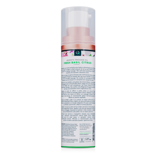 Genießen Sie die entspannende Wirkung des Massageöls von Exotiq. Dieses Massageöl hat einen wunderbaren Basilikum-Zitrus-Geruch. Verwenden Sie die Pumpe, um etwas Öl auf Ihre Hände aufzutragen, und reiben Sie Ihre Hände warm. Anschließend können Sie es über den Körper Ihres Partners verteilen. Das Massage-Öl fühlt sich seidig glatt an und hat eine pflegende Wirkung.