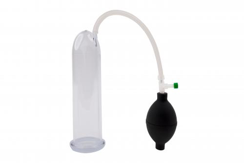 Trage zunächst etwas Gleitmittel auf Wasserbasis auf den Penis auf. Ziehe anschließend den Zylinder über den schlaffen Penis und drücke ihn gegen den Körper. Schließe den Schlauch der Vakuumpumpe mit dem Schlauchanschluss an den Zylinder an und erzeuge durch leichtes Drücken der Kugelpumpe ein Vakuum. Beachte, dass sich die empfindliche Haut des Penis langsam an den Unterdruck gewöhnen muss. Öffne den Druckregler regelmäßig während des Gebrauchs. Dadurch kann die Durchblutung ein wenig zurückkehren. Pumpe dann erneut, bis du den gewünschten Effekt erreicht hast. Verwende die Penispumpe maximal 20 Minuten lang und breche die Anwendung sofort ab, wenn du Schmerzen oder Unbehagen verspürst.