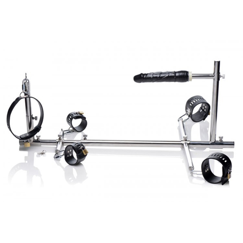 Bestrafen und erfreuen Sie Ihren Sub in dieser hinterhältigen unverwechselbaren Haltung in dem Bodenpranger! Binden Sie Ihren Sub am Hals, an den Handgelenken und an den Knöcheln fest, während sie von einem realistischen Dildo penetriert wird. Alle Teile dieser bemerkenswerten Vorrichtung sind verstellbar, so können Sie die Basisleiste verlängern, die Höhe des Dildos und des Halsbands anpassen und die Position Ihrer Geliebten an Handgelenken und Knöcheln verändern. Die Konstruktion könnte nicht einfacher sein, nur mit einfachen Schraubverbindungen. Die luxuriösen, strapazierfähigen Manschetten sind alle mit einer Verschlussklammer versehen, damit sie nicht entkommen kann, und einem D-Ring, um sie mit dem Pranger zu verbinden oder um sie evtl. in anderen Bondageszenen zu verwenden!