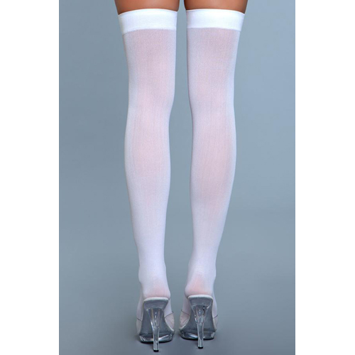 Halterlose, blickdichte Strümpfe aus Nylon.