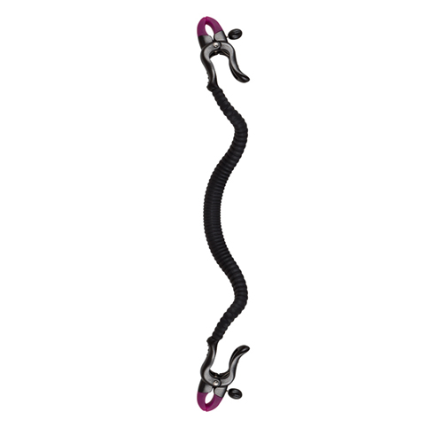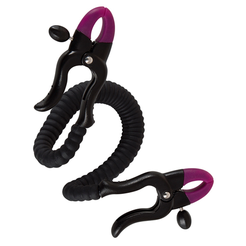 Gebogen in die Vagina eingeführt, wird die Klitoris freigelegt und gleichzeitig der G-Punkt gezielt stimuliert, während ER bei jedem Stoß von den Reibungen der ausgeprägten Reizrillen in die Zange genommen wird. Die Schamlippenspange lässt sich individuell in Passform biegen. Die Klemmen sind dank Stellschrauben nach Bedarf justierbar.