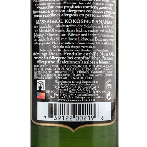 Genießen Sie eine entspannende und stimulierende Massage mit dem Kokosnuss, Ananas Massageöl von Kamasutra.Das Massageöl aus der Naturals Kollektion besteht aus natürlichen Zutaten, die die Haut pflegen und sie nach jeder Anwendung sanft und geschmeidig anfühlen lassen. Der tropische Duft von Kokosnuss und Ananas sendet Sie auf eine tropische Insel mit wogenden Palmen und weißen Stränden. Die Berührung der Hand Ihres Partners wird Sie entspannen und sich gleichzeitig sinnlich anfühlen.