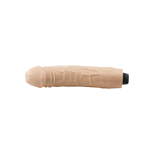 38 cm langer Riesen-Vibrator mit extra praller Eichel, ausgeprägter Reizäderung und starker Verwöhn-Vibration. Hautfarbenes Gleitmaterial. Ø ca. 6 cm-7 cm. Stufenlos regelbar.