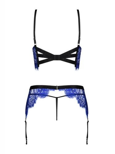 Kobaltfarbenes 3-teiliges Strumpfhalter-Set aus Spitze – Blau