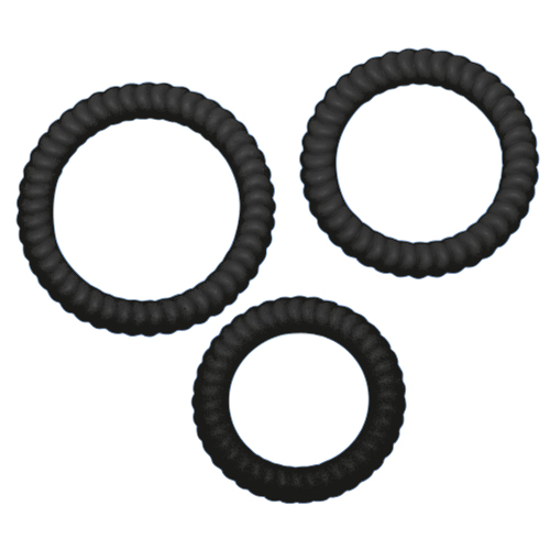 Das Lust-Trio für imposante Erektionen! 3 Penisringe mit Rillenstruktur mit unterschiedlichen Durchmessern (2,6, 3,0 und 3,5 cm). Auch ideal zur Hoden-Schnürung. Einzeln oder in Kombination zu verwenden. Material: Silikon, phthalatfrei gemäß EU-Verordnung 1907/2006/EC.