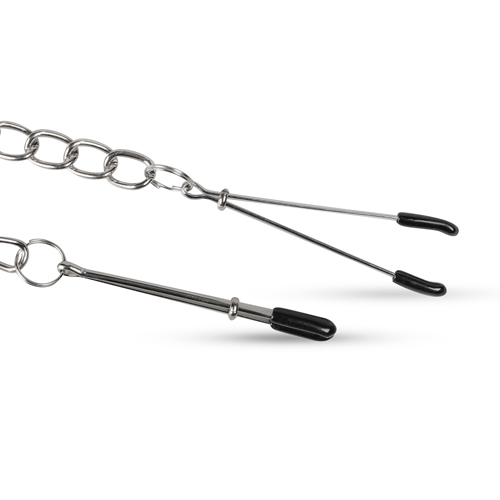 Die Pinzetten-Nippelklemmen aus der Kollektion von EasyToys sind für jeden Benutzer geeignet. Die Klammern sind stark, einfach zu bedienen und können leicht jedem Wunsch angepasst werden. Das Gewicht der Metallkette zieht sie leicht an den Klemmen. Das kann natürlich Ihren Partner dazu inspirieren, Ihnen noch stärkere Empfindungen zu bereiten. Lassen Sie ihn oder sie die Kette festhalten und sanft daran ziehen und erleben gemeinsam eine Nacht voller perverser Abenteuer.