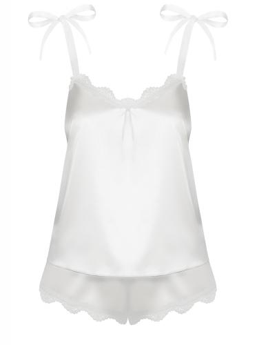 Dieses romantische 2-teilige Shortama-Set von Obsessive besteht aus einem Oberteil und einem passenden Höschen. Es ist aus einem Material in Satin-Optik gefertigt, sowohl das Oberteil als auch das Höschen sind mit schönen Details versehen und das Oberteil hat Schleifen. Das Höschen hat einen Kordelzug. Das Set ist sehr angenehm zu tragen und eignet sich wunderbar zum Schlafen.