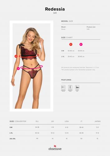 Redessia 2-teiliges Spitzen-BH-Set – Rot/Schwarz