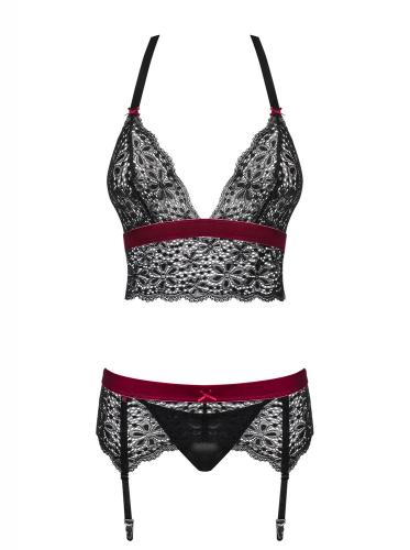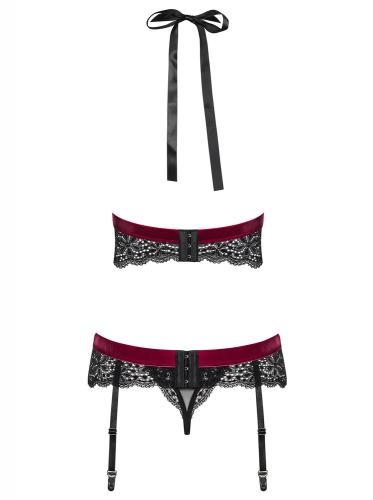 Verführe deinen Partner mit diesem 3-teiligen Strumpfband-Set von Obsessive! Das Set enthält einen Soft-Cup-BH, einen Strapsgürtel und einen passenden Tanga. Der Neckholder lässt sich leicht binden und die Strumpfbandhalter sind verstellbar. Dieses Set enthüllt für einen aufregenden Look vollständig deinen Hintern. Ergänze dein Outfit mit einem Paar passender Strapsstrümpfe.