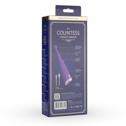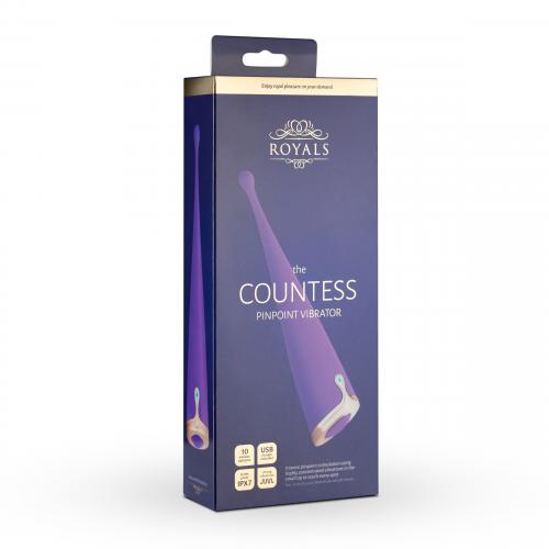 Der punktgenaue Countess Klitorisvibrator ist ein hochmodernes Präzisionsspielzeug zur optimalen, gezielten Klitorisstimulation. Der Countess-Vibrator hat einen flexiblen Kopf und kann mit nur einer Taste gesteuert werden. Man kann problemlos zwischen drei Vibrationseinstellungen und sieben verschiedenen Vibrationsmustern wechseln. Das seidig weiche Silikonmaterial verschafft dir ein komfortables Gefühl. Der Vibrator kann mit dem enthaltenen USB-Kabel schnell wiederaufgeladen werden. Reinige das Spielzeug nach jedem Gebrauch immer mit klarem, lauwarmem Wasser und einem Spielzeugreiniger.