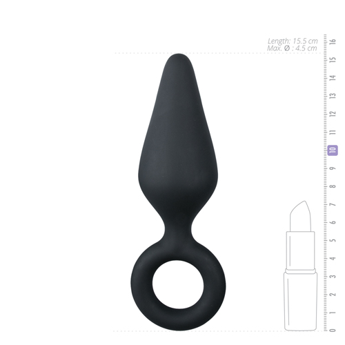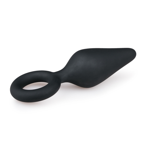Schwarzer Buttplug mit Zugring – Groß