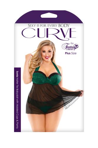 Ihr Partner wird diesem sexy Evergreen-Set aus der Curve-Reihe nicht widerstehen können! Die Curve-Reihe wurde speziell für Frauen mit kurvigen Figuren entworfen und ist unglaublich komfortabel. Dieses Sonia Babydoll-Kleid hat eine lose Passform und kann an Hals und Rücken mit weißen Satinbändern geschnürt werden. Die Körbchen bieten schöne grüne Spitzendetails, Bügel und Polster, die Ihren Brüsten perfekten Halt gibt. Die Vorderseite dieses Babydoll-Kleids ist transparent. So auch die passenden hoch geschnittenen Höschen. Das Material ist besonders elastisch, das garantiert eine tolle Passform.