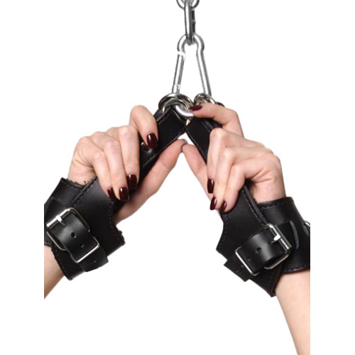 Diese Hängefesseln aus Leder sind sehr komfortabel und beständig. Das Futter aus weichem Fleece ist geschmeidig und schmiegt sich glatt um die Haut. Ziehen Sie die Seile kräftig an und lassen Sie Ihre unanständigsten Fantasien spielen …