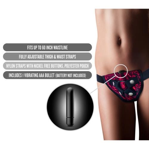 Das Gurtzeug Lovelace von Temptasia bietet maximalen Komfort für dein Strap-on-Spiel. Die Nylongurte sind verstellbar und passen sicher um Taillen bis zu einem Umfang von 152 cm. Der enthaltene O-Ring kommt problemlos mit durchschnittlichen bis kleinen Strap-on-Dildos klar. Und darüber hinaus hat dieses schöne Gurtzeug eine Tasche, die den vibrierenden Bullet mit einer Geschwindigkeit hält, um deine Erfahrung um Vibrationen zu ergänzen. Das Gurtzeug Lovelace von Temptasia ist eine günstige und stilvolle Wahl für Strap-on und Peggingspiele! Vibrierender Bullet im Lieferumfang enthalten. Benötigt 1 AAA-Batterie – nicht im Lieferumfang enthalten.