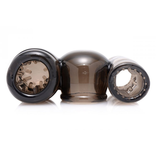 Wie lange können Sie diesem Accessoire widerstehen, das aus einem Massagestab zwei verlockende Sexspielzeuge für Männer macht? Dieser Aufsatz gleitet leicht über den Kopf eines standardmäßigen Stabvibrators und bietet zwei strukturierte Masturbatoren, die mit der gleichen unglaublichen Kraft wie Ihr Massagegerät vibrieren. Ein Masturbator ist auf der einen Seite geschlossen und mit weichen Ranken ausgekleidet, um so dem Peniskopf durch Necken und Kitzeln Vergnügen zu bereiten. Der andere Masturbator ist offen und mit stimulierenden Noppen gesäumt, um dem ganzen Schaft Vergnügen zu bereiten und bei jedem Stoß unerträglich intensiv zu massieren.