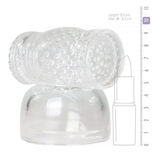 Mit diesem Aufsatz können Sie die Vibrationen des Wand Vibrators ganz einfach genießen. Sie können Ihren Penis durch die Öffnung schieben und anschließend den Aufsatz hin und her bewegen. Am Ende des Tunnels befindet sich eine Verdickung, durch die Ihre Eichel noch stärker stimuliert wird. Wählen Sie Ihre Lieblingsstufe Ihres Wand Vibrators und genießen Sie optimal! Dieser Aufsatz ist in Kombination mit einem Wand Vibrator mit einem durchschnittlichen Durchmesser von 5,5 cm zu verwenden.