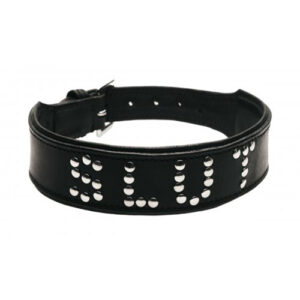 Halsband aus Leder mit SLUT-Schriftzug (aus Nieten)