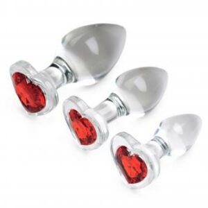 Red Heart Analplugset aus Glas mit Schmuckstein