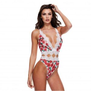 Baci – Weißer-Spitzen-Teddy mit Blumenmuster und Schnürung
