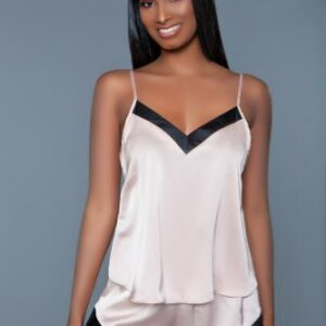 Natalie Satin-Chemise & Höschen – Schwarz/Rosa