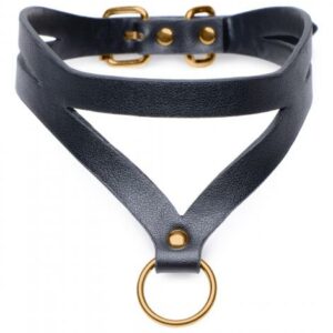 Bondage Baddie Halsband mit O-Ring – Schwarz/Gold
