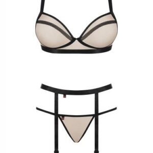 Nudelia 3-teiliges Strumpfband-Set – Hautfarben/Schwarz