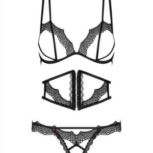Bravelle Strapsgürtel und Tanga mit offenem Schritt in 1 – Schwarz