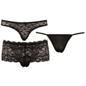 3-teiliges Spitzentanga-Set mit Text – kurvig