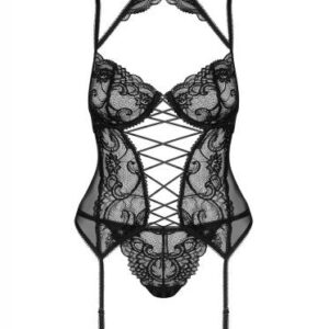 Elizenes Strumpfband Korsett mit sexy Tanga – Schwarz