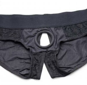 Envy Strap-On-Gurtzeug mit offenem Schritt und Spitze – Schwarz